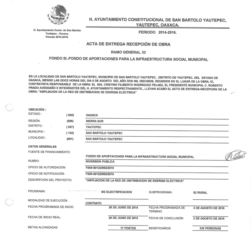 Gobierno en beneficio de los habitantes del municipio.